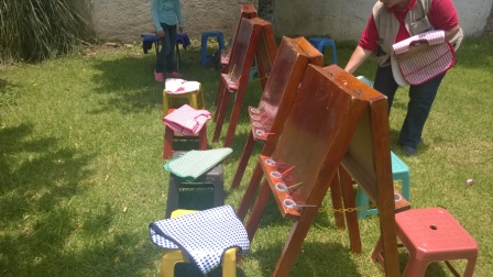 Los niños desarrollan su creatividad mediante la pintura de caballete, en una gran variedad de personajes acordes con su edad.