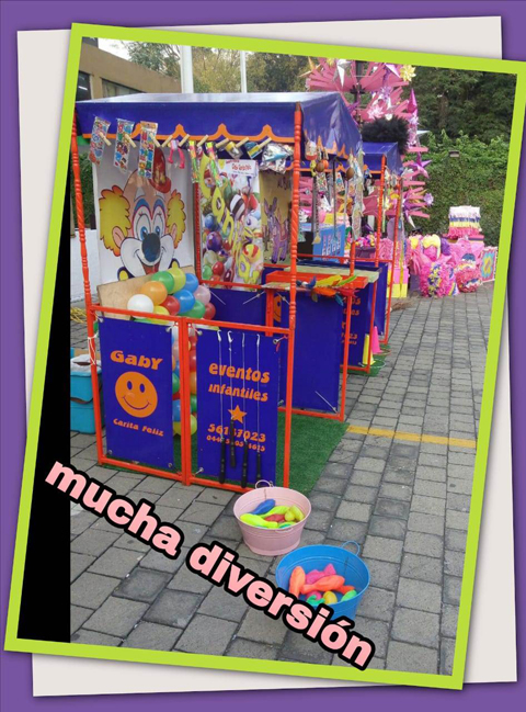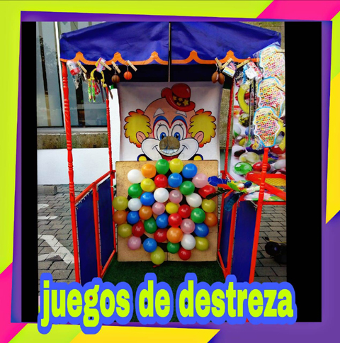Juegos de destreza para todo público , organización de dinámicas en cada juego dependiendo su edad. Tiro con aros Pesca Botes lecheros Payaso Tira Bolas Canicas Ponle la cola al burro Chuta Gol Canasta de Basket Globos Loteria Golfito Alinea cuatro Limbo 20 regalos por cada puesto. Personal a cargo Duración: 3 horas. Eventos Infantiles Gabi Carita Feliz tel. 5618 7023 , cel. 55 4051 4615 , cel. 55 2553 7692 gabisuasnavar@hotmail.com gabi carita feliz